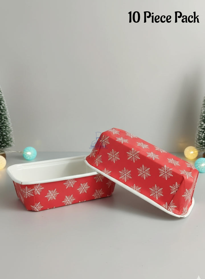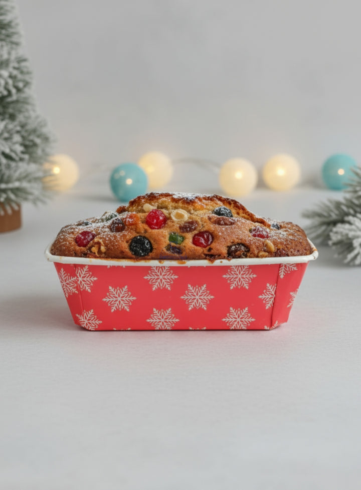 This is a charming and festive paper loaf mold designed specifically for holiday baking. Perfect for making individual plum cakes, fruit loaves, gingerbreads, or small dessert breads.