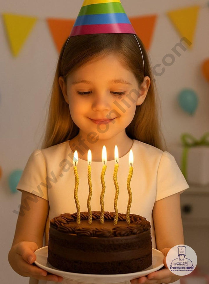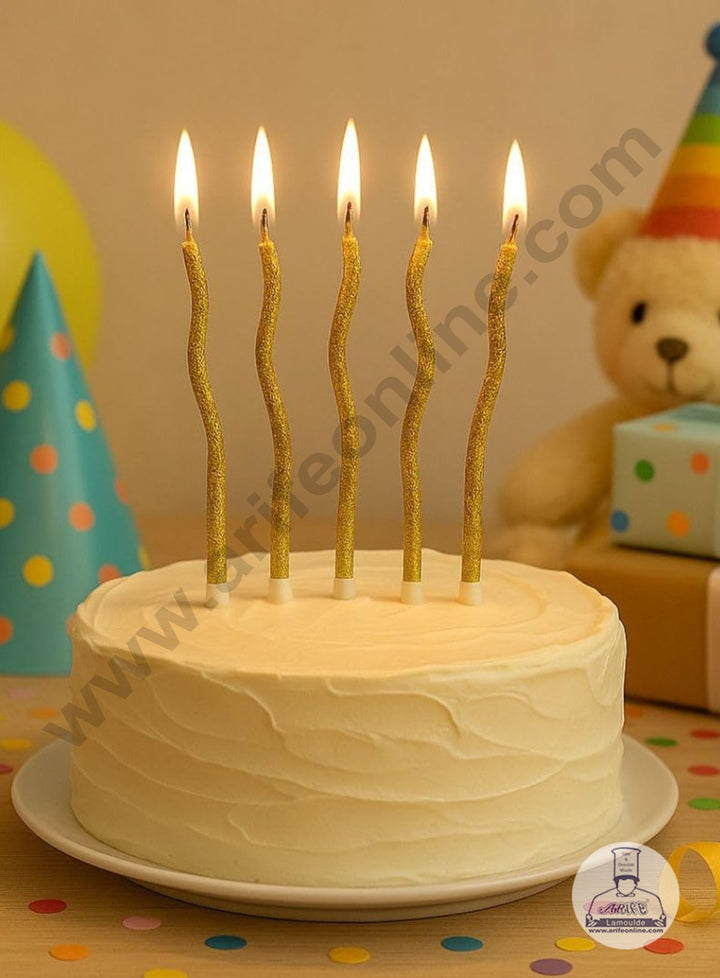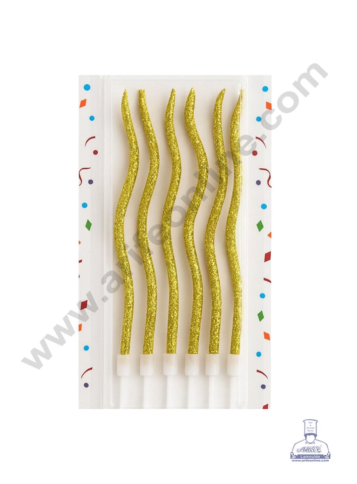 Cake Decor™ Unscented Party Twisty Metallic Golden Glitter Shimmer Spiral Candles-6Pc, Twisty Candles for Birthday, Baby Shower, Wedding Party & Cake Decoration │SBSP-TMGS-Golden│
