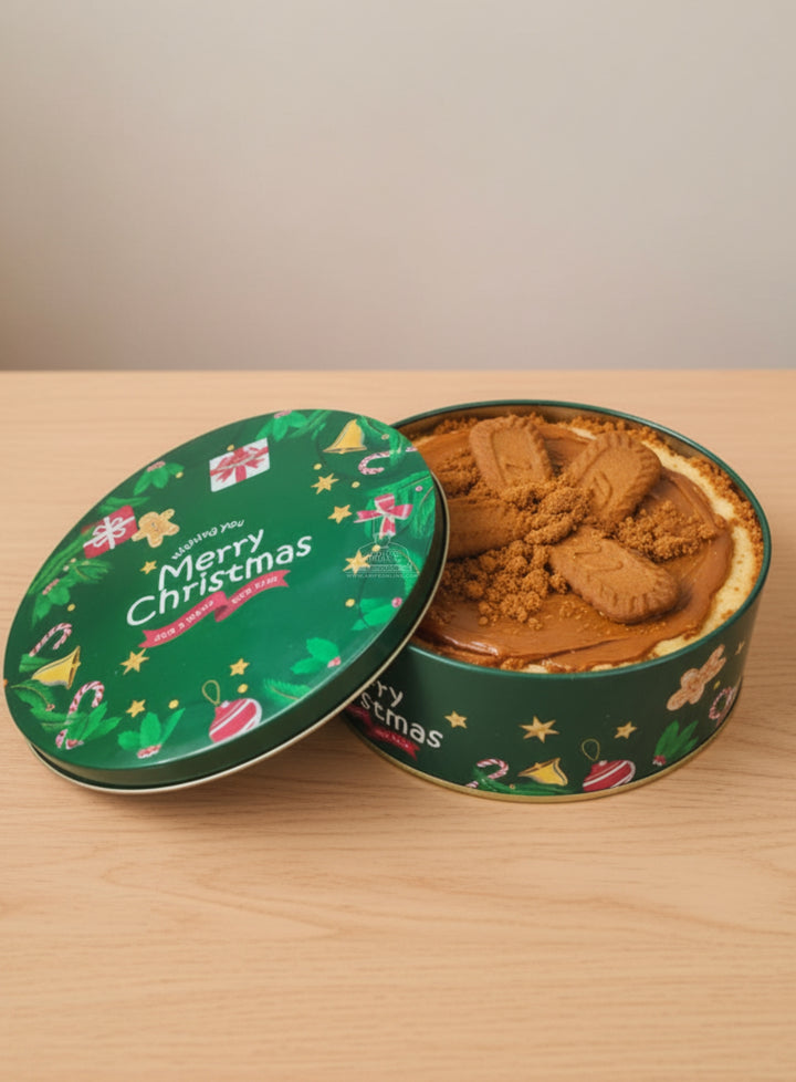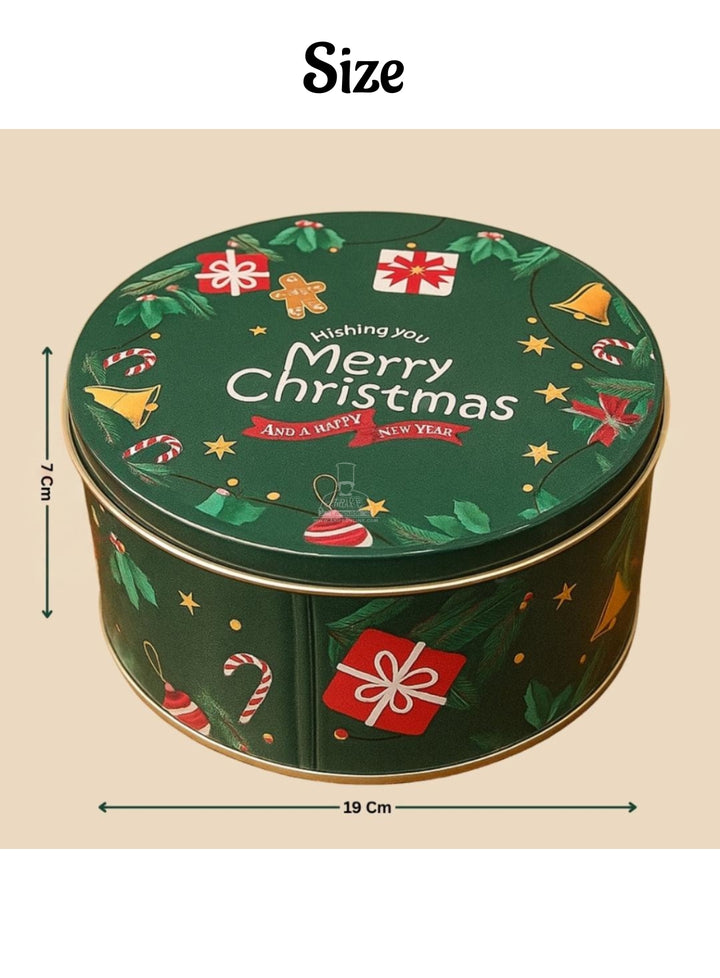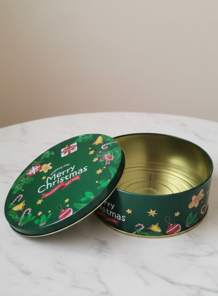 Cake Decor ™ Large Merry Christmas Tins - Dark Green | Round Storage Containers Tins | 1 Pc Pack