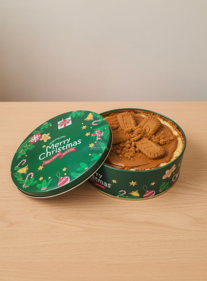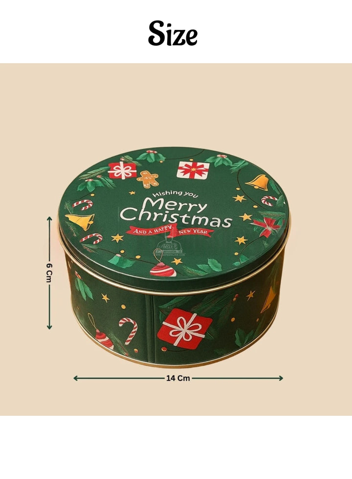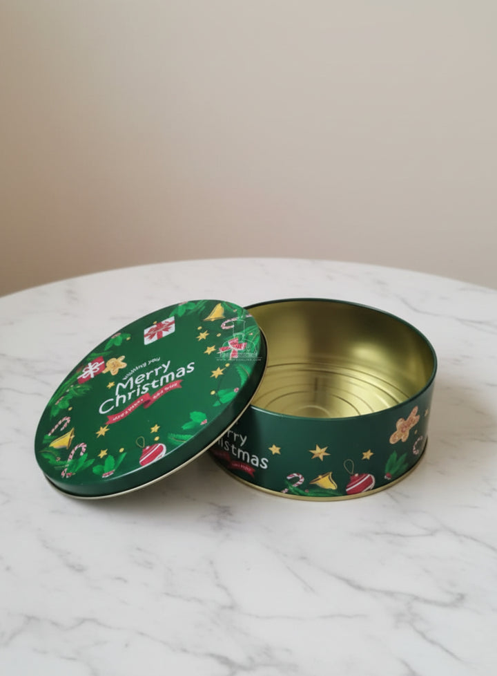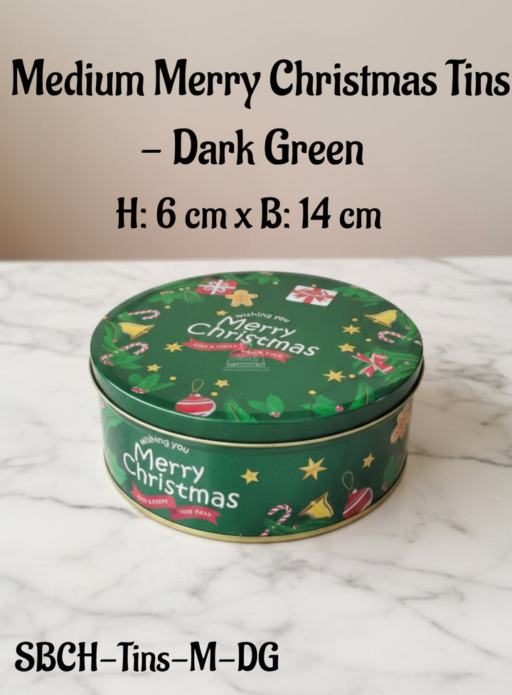 Cake Decor ™ Medium Merry Christmas Tins - Dark Green | Round Storage Containers Tins | 1 Pc Pack