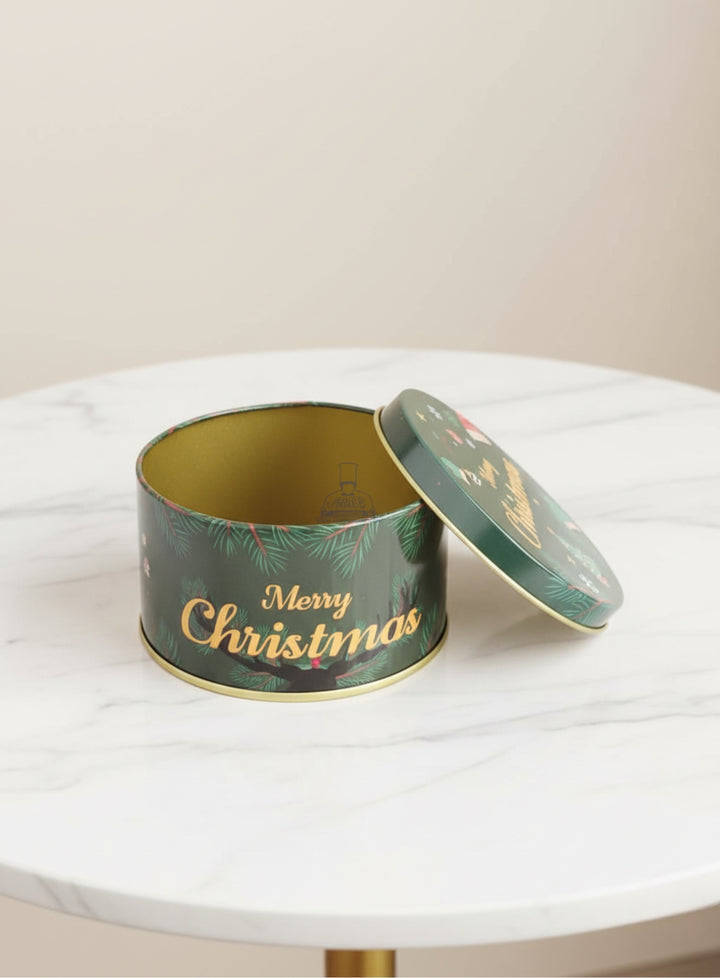 Cake Decor ™ Merry Christmas Tins Round Shape - 12 | L: 7.5 x W: 7.5 x H: 4.5 cm| Round Storage Containers Tins | 1 Pc Pack