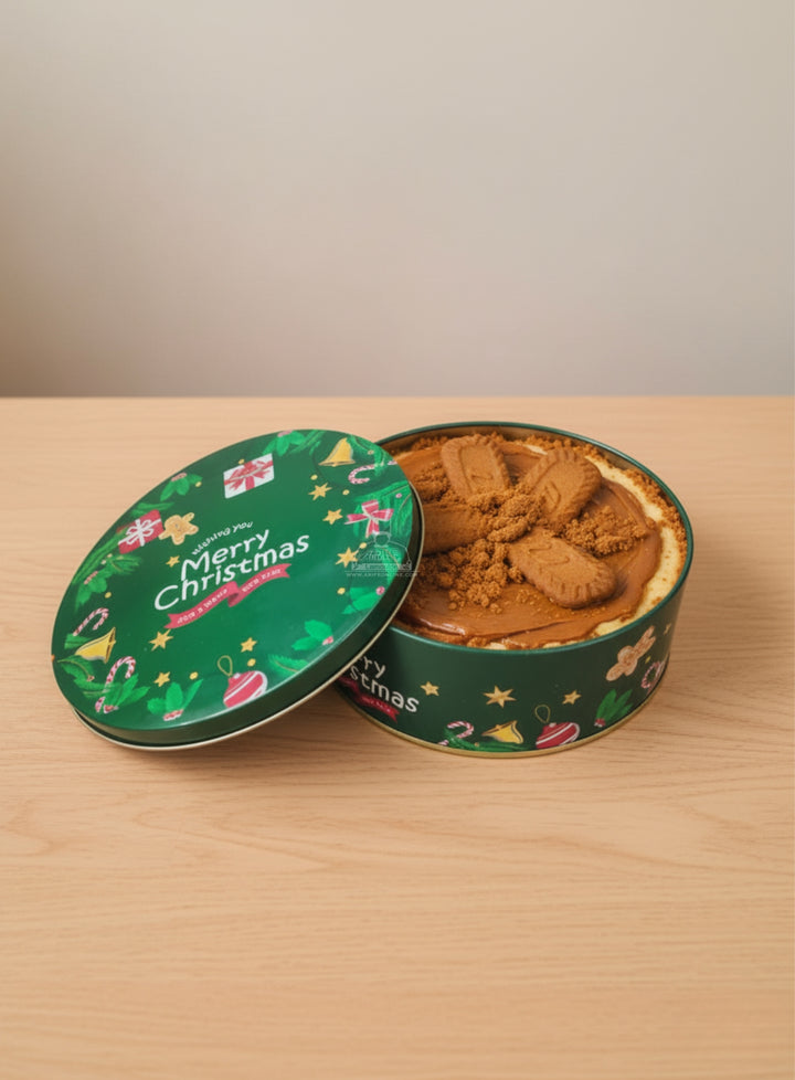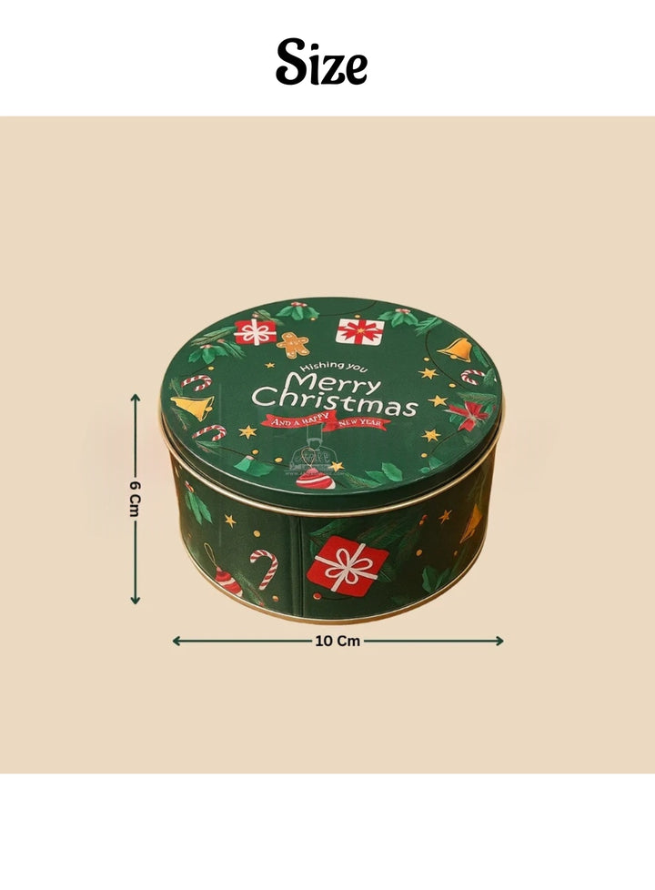 Cake Decor ™ Small Merry Christmas Tins - Dark Green | Round Storage Containers Tins | 1 Pc Pack