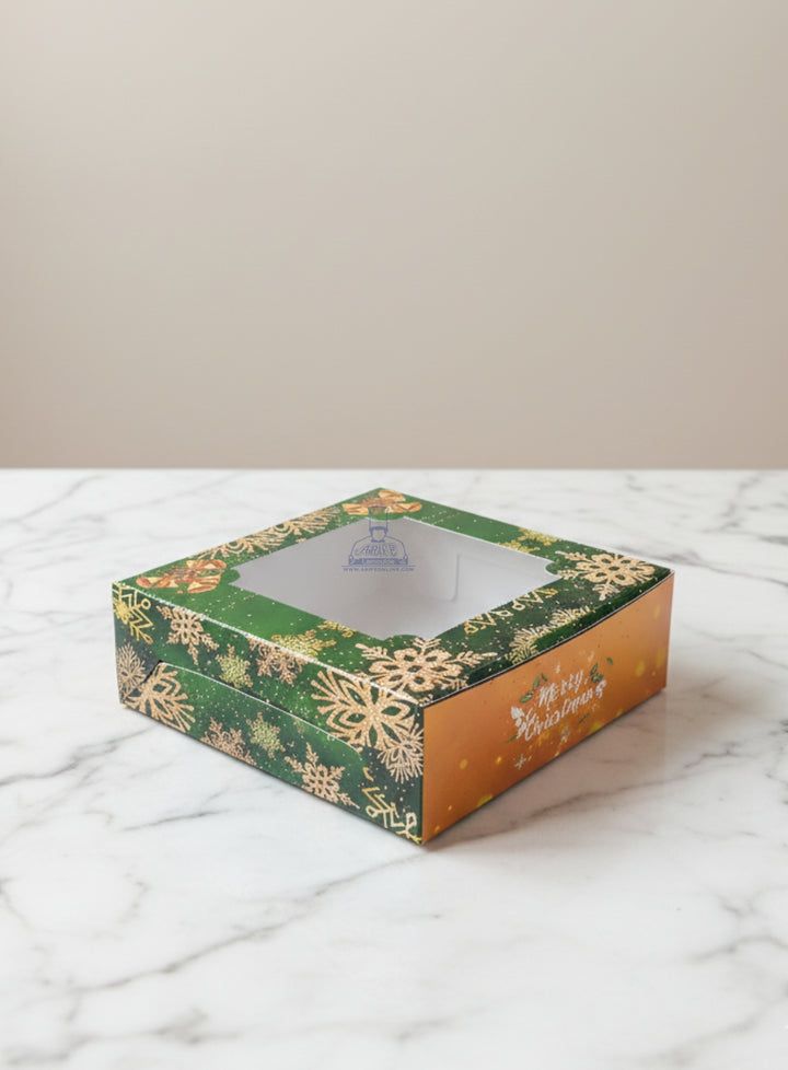 Christmas 4 Brownie Box - Green | Size: 6x6x2 inch | 10 Piece Pack - CAKE DECOR™