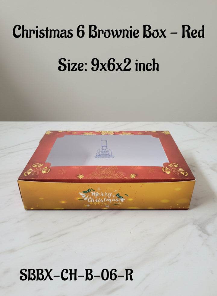 Christmas 6 Brownie Box - Red | Size: 9x6x2 inch | 10 Piece Pack - CAKE DECOR™