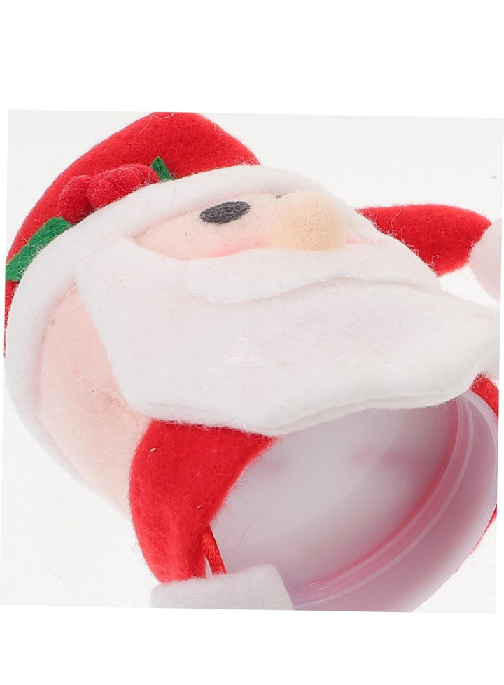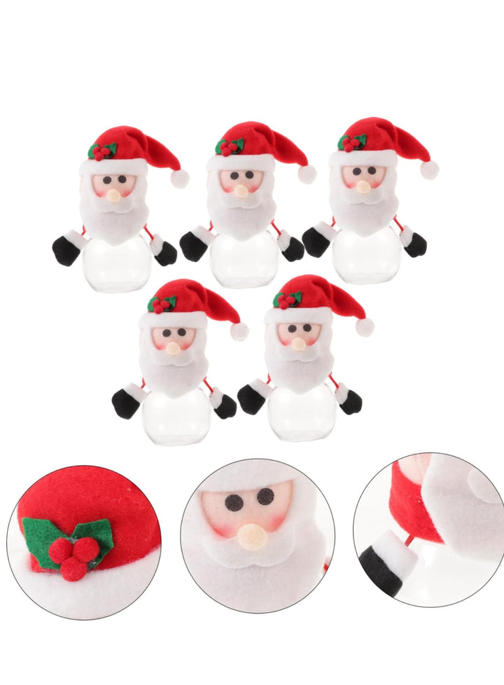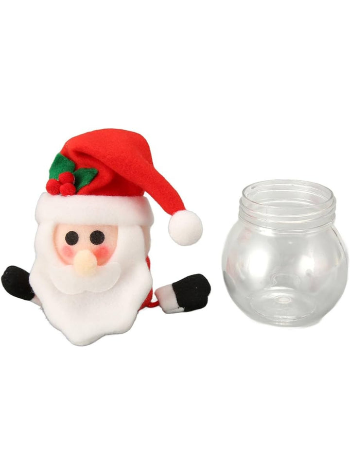 It features a traditional Santa Claus design, perfect for small treats, decorative fillings, or as a charming holiday ornament. The top part is a plush Santa head with a classic red hat adorned with holly, a white beard, and a friendly face. The lower part is a clear, spherical jar, likely made of plastic. It has small black-gloved hands extending from the Santa figure.