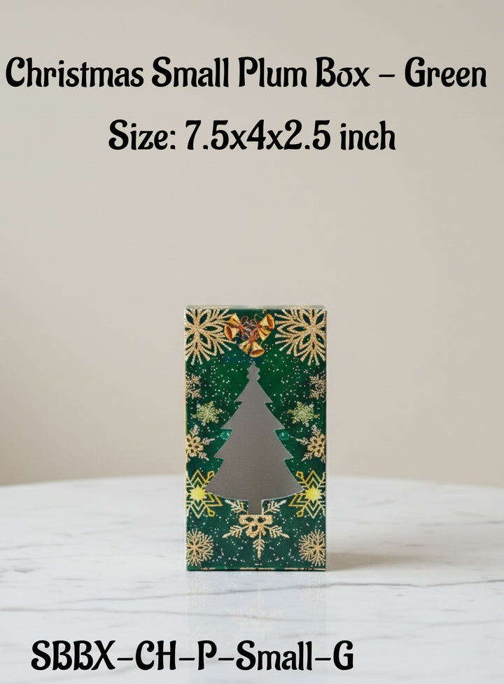 Christmas Small Plum Box - Green | Size: 7.5x4x2.5 inch | 10 Piece Pack - CAKE DECOR™