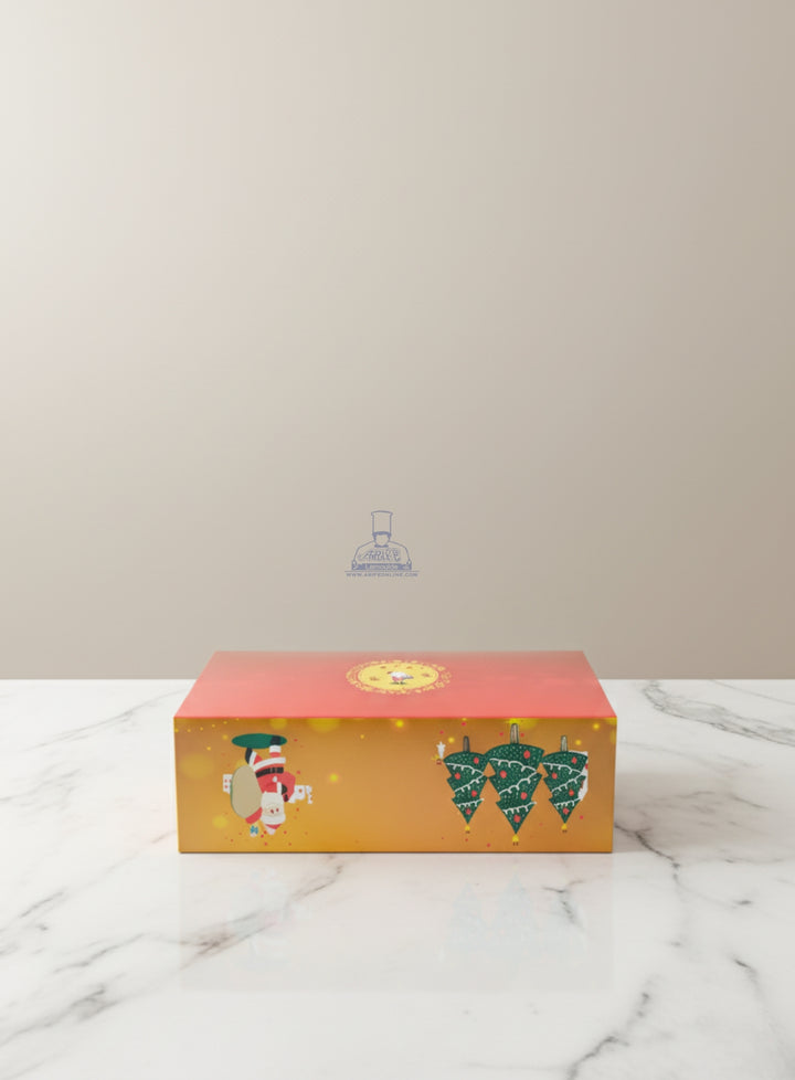 This is a tall, narrow rectangular Plum box designed specifically for the holiday season.