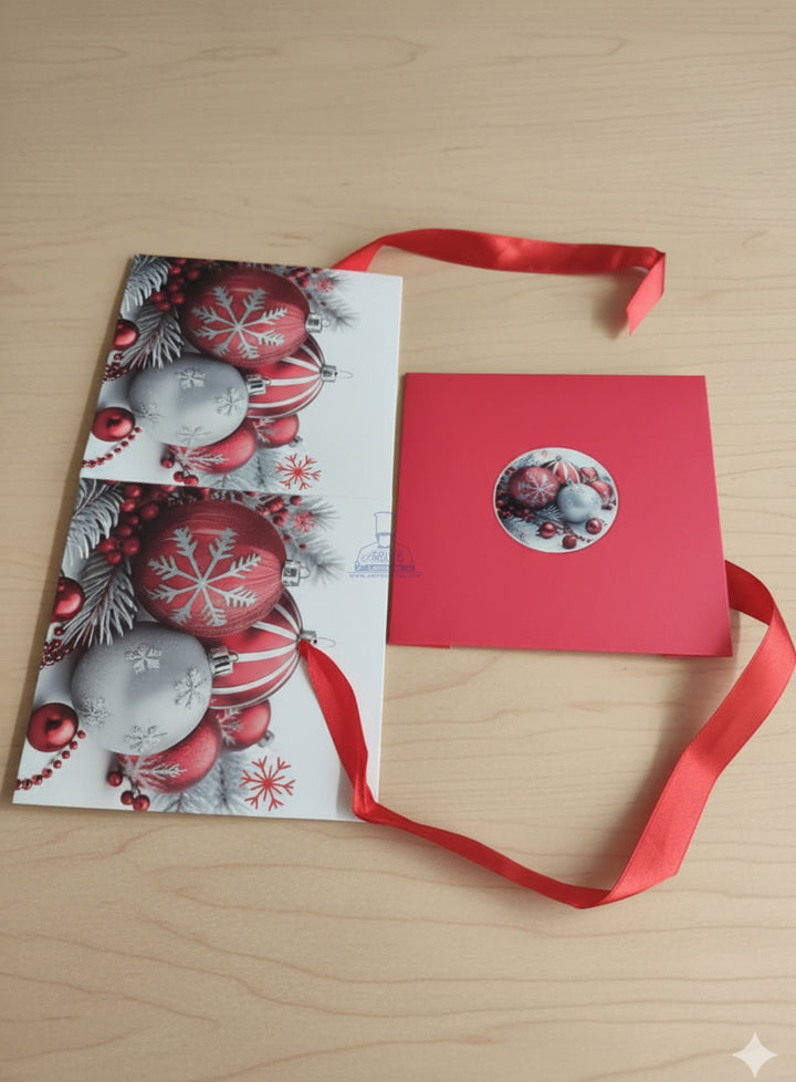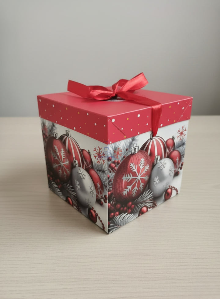 Christmas Square Hamper Box With Ribbon - Balls | 15 x 15 x 15 cm | 1 Piece - CAKE DECOR™