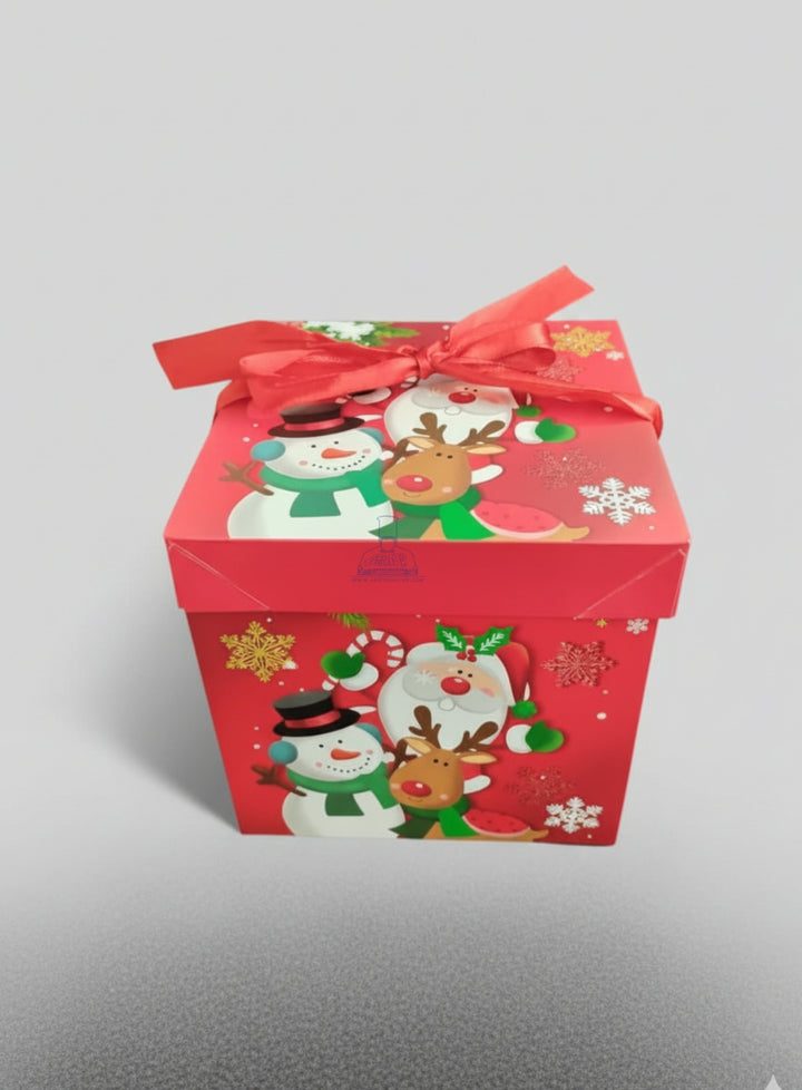 This box combines classic Christmas imagery with a whimsical design, making it an attractive packaging solution for various holiday goodies.