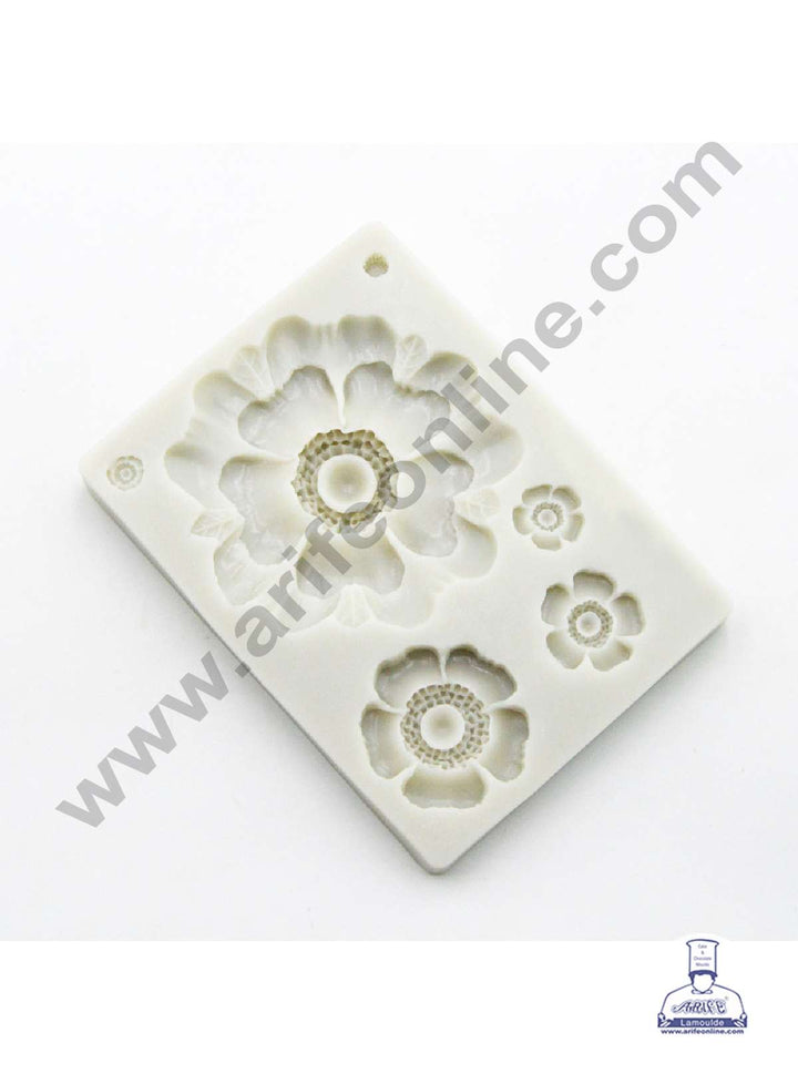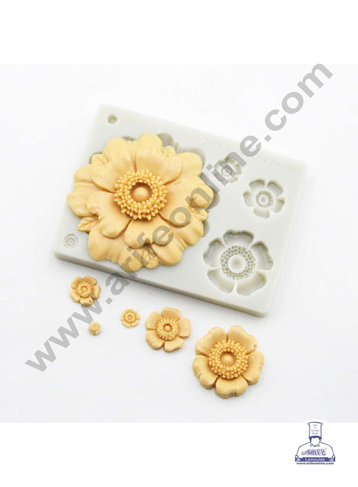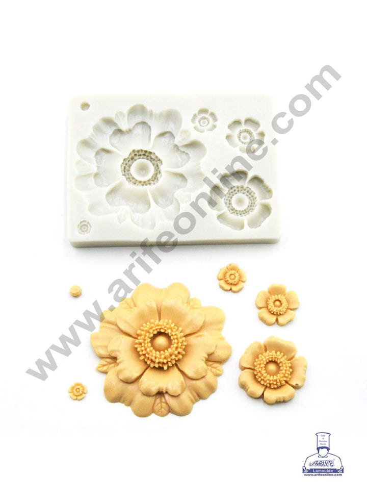 CAKE DECORâ„¢ 5 Cavity 3D Prime Rose Flower Fondant Clay Marzipan Cake Decoration Mould SBSP-B740