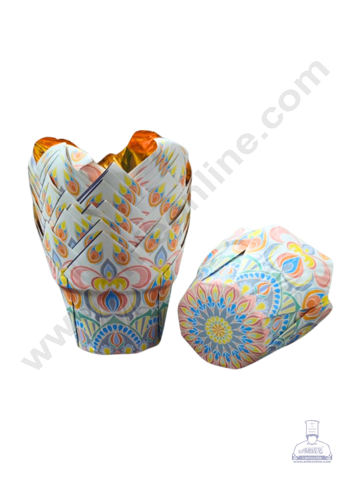 Gold Foil Tulip Cup Shaped Muffin Mould - 08(50 Pcs)-CAKE DECORâ„¢