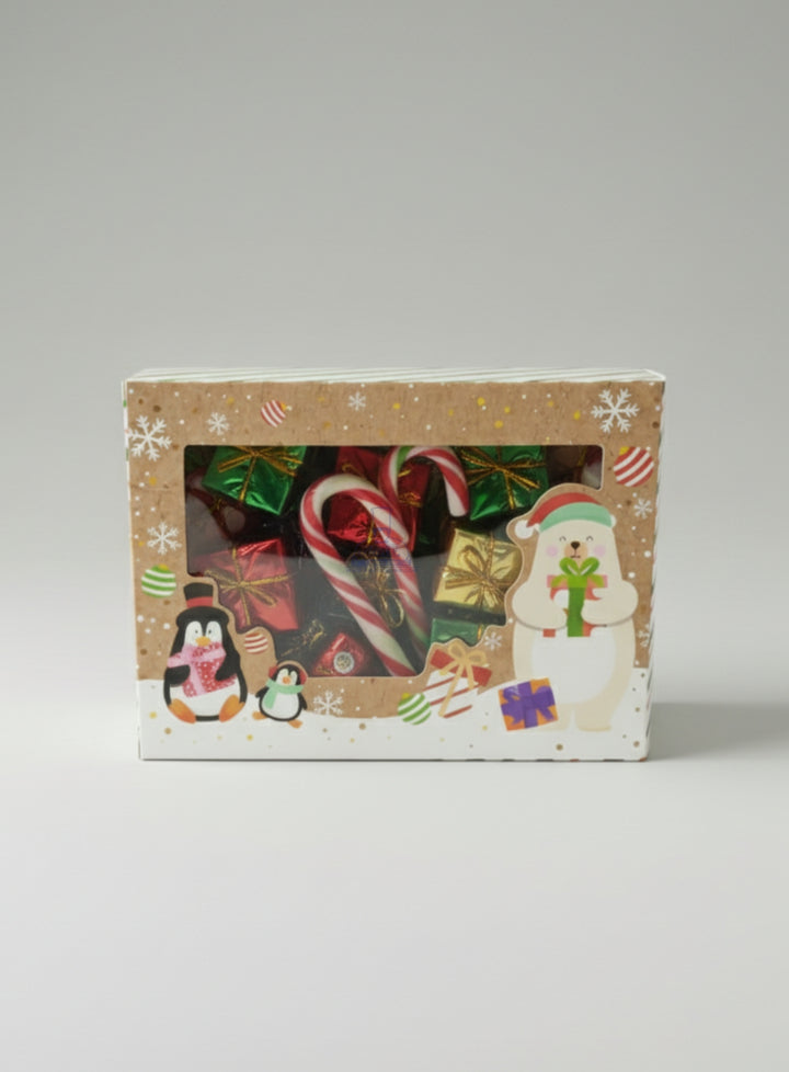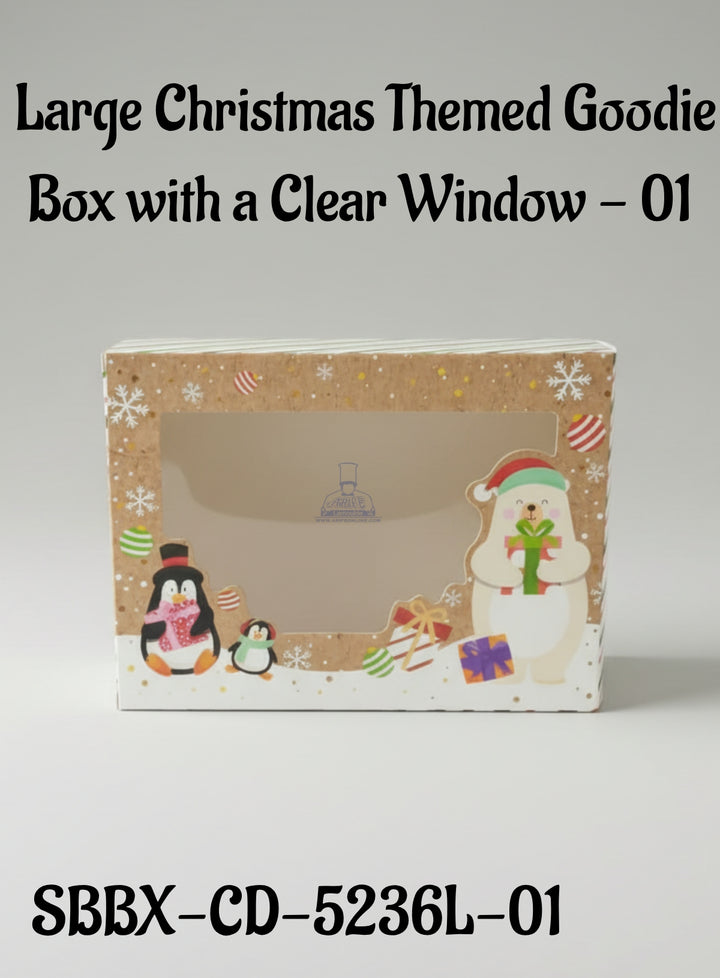 Large Christmas Themed Goodie Box with a Clear Window - 01 | 25 x 18 x 8 cm | 1 Piece - CAKE DECOR™