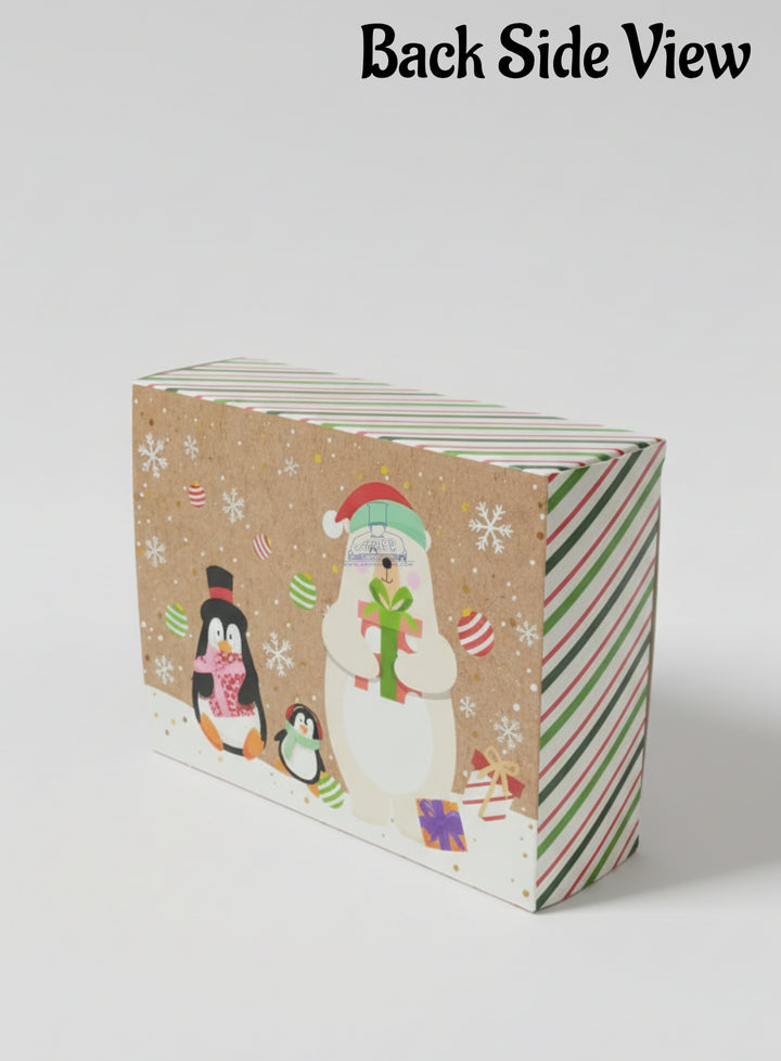 This box combines classic Christmas imagery with a whimsical design, making it an attractive packaging solution for various holiday goodies.