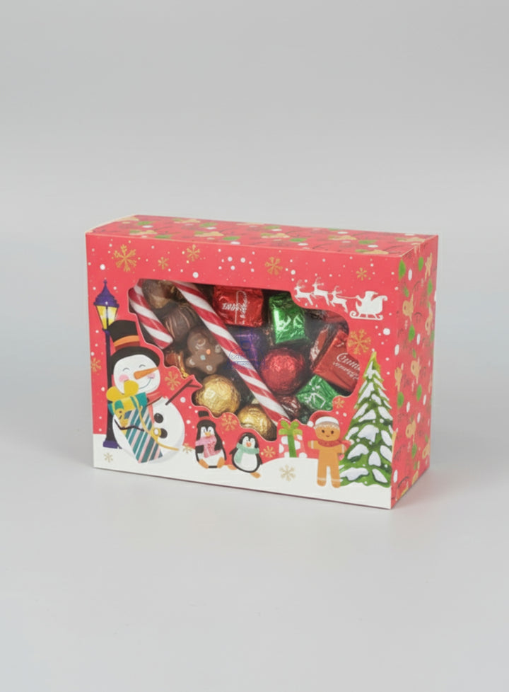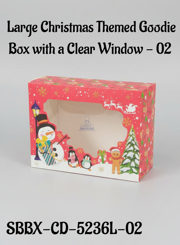 Large Christmas Themed Goodie Box with a Clear Window - 02 | 25 x 18 x 8 cm | 1 Piece - CAKE DECOR™