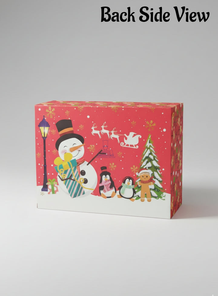This box combines classic Christmas imagery with a whimsical design, making it an attractive packaging solution for various holiday goodies.