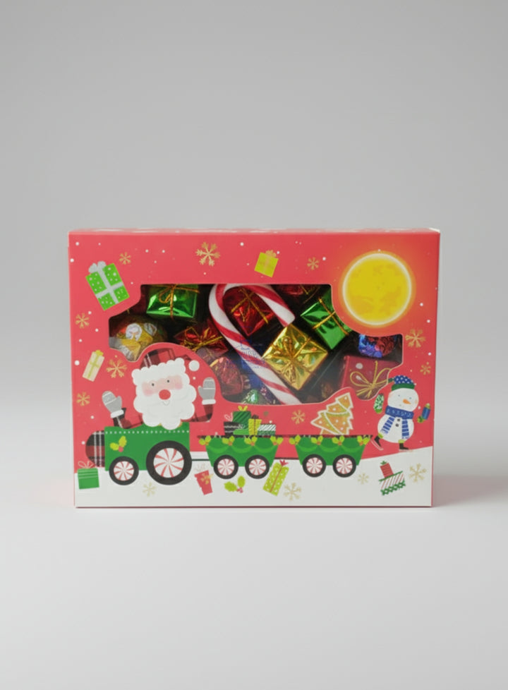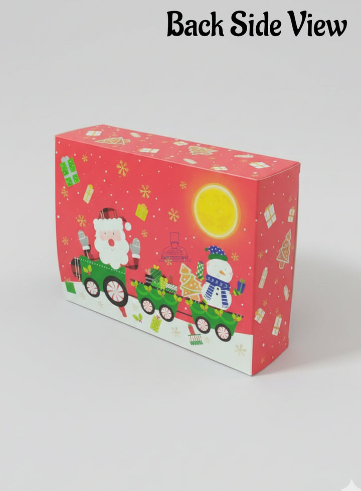 This box combines classic Christmas imagery with a whimsical design, making it an attractive packaging solution for various holiday goodies.