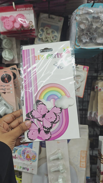 Pink Paper Rainbow With Cloud And Butterfly Toppers For Cake Decoration - 5 Pcs Pck (SBMT-PT-Rainbow5)