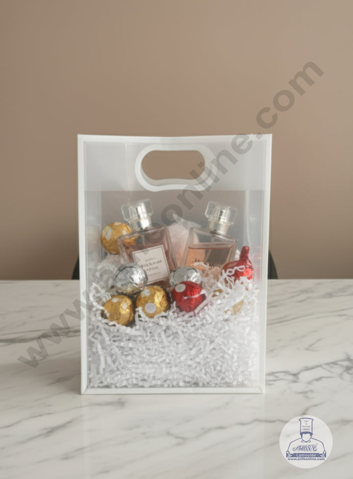 Small White Transparent Bag with Handle (H: 26 X L: 18 X W: 8 cm) | 1 Piece | Gift Bag with Handle - CAKE DECOR™