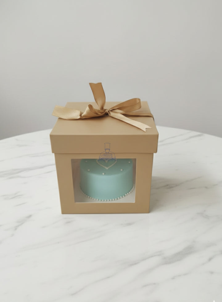 Square Hamper Box With Ribbon & Clear Window - Khaki | 15 x 15 x 15 cm | 1 Piece - CAKE DECOR™