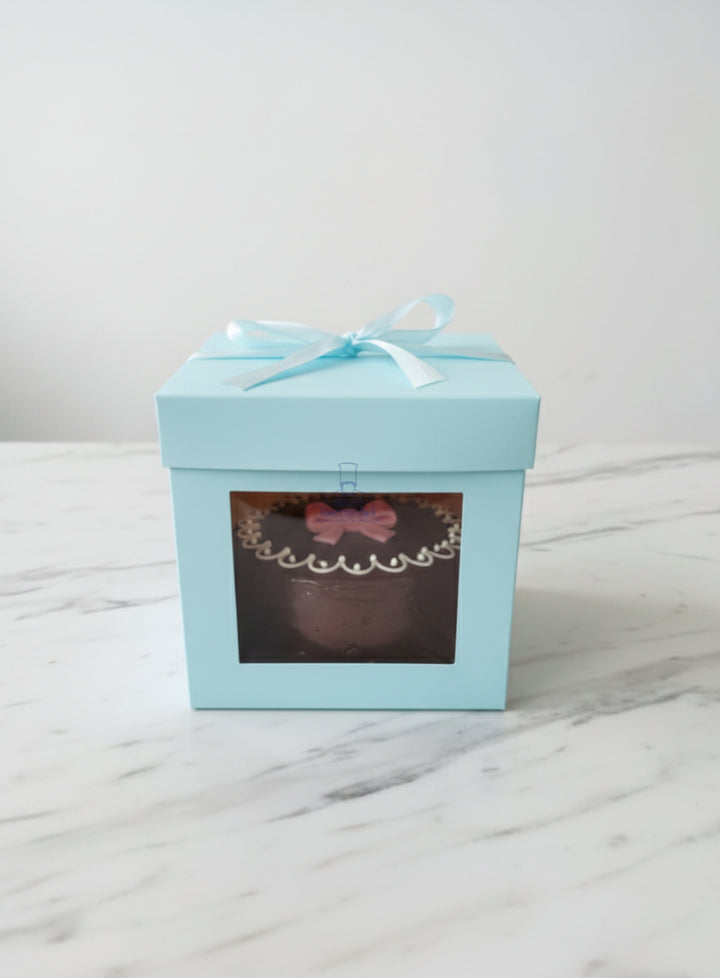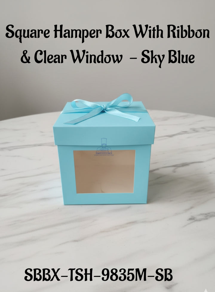 Square Hamper Box With Ribbon & Clear Window - Sky Blue | 15 x 15 x 15 cm | 1 Piece - CAKE DECOR™