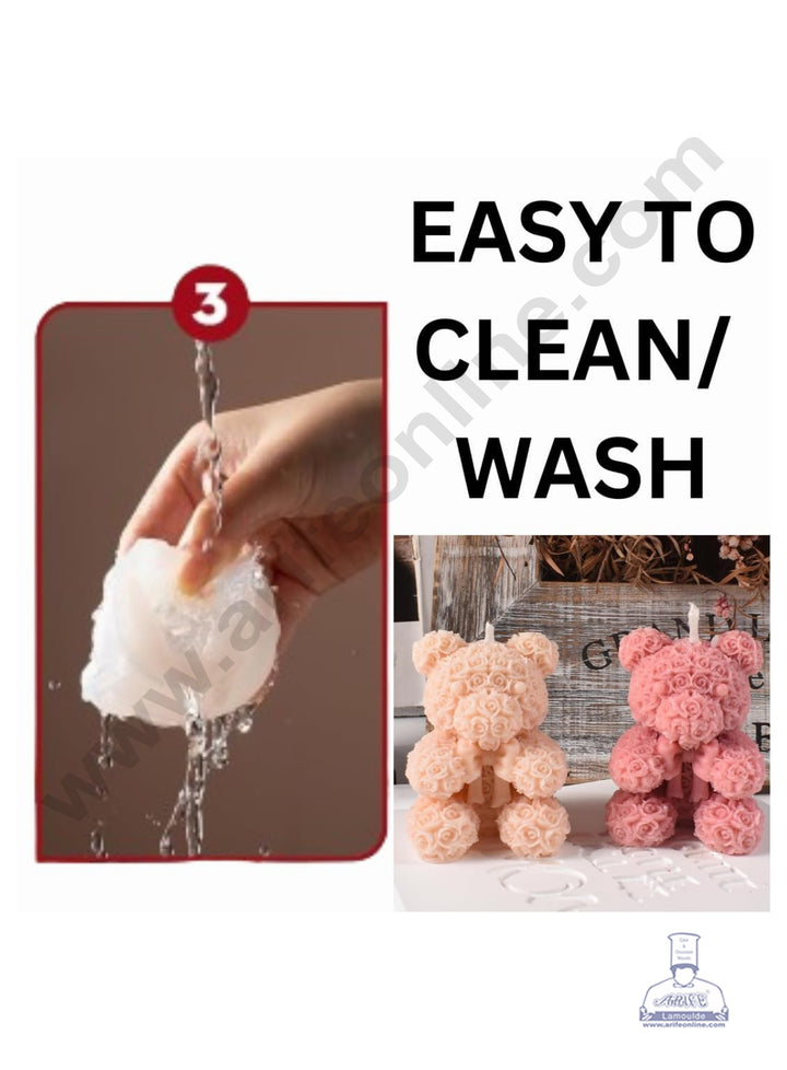 CAKE DECOR™ Teddy Bear with Rose Texture and Heart Silicone Candle Mold│SB-SCM-DYF7332│