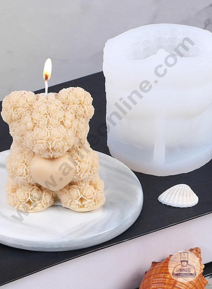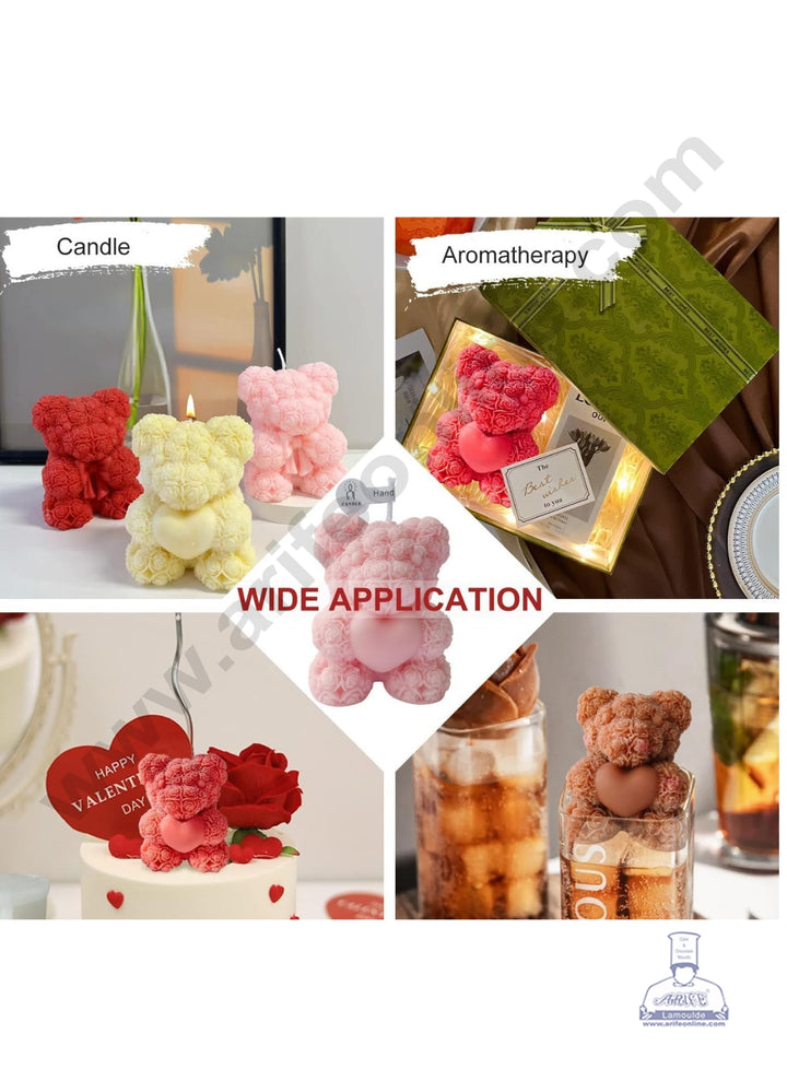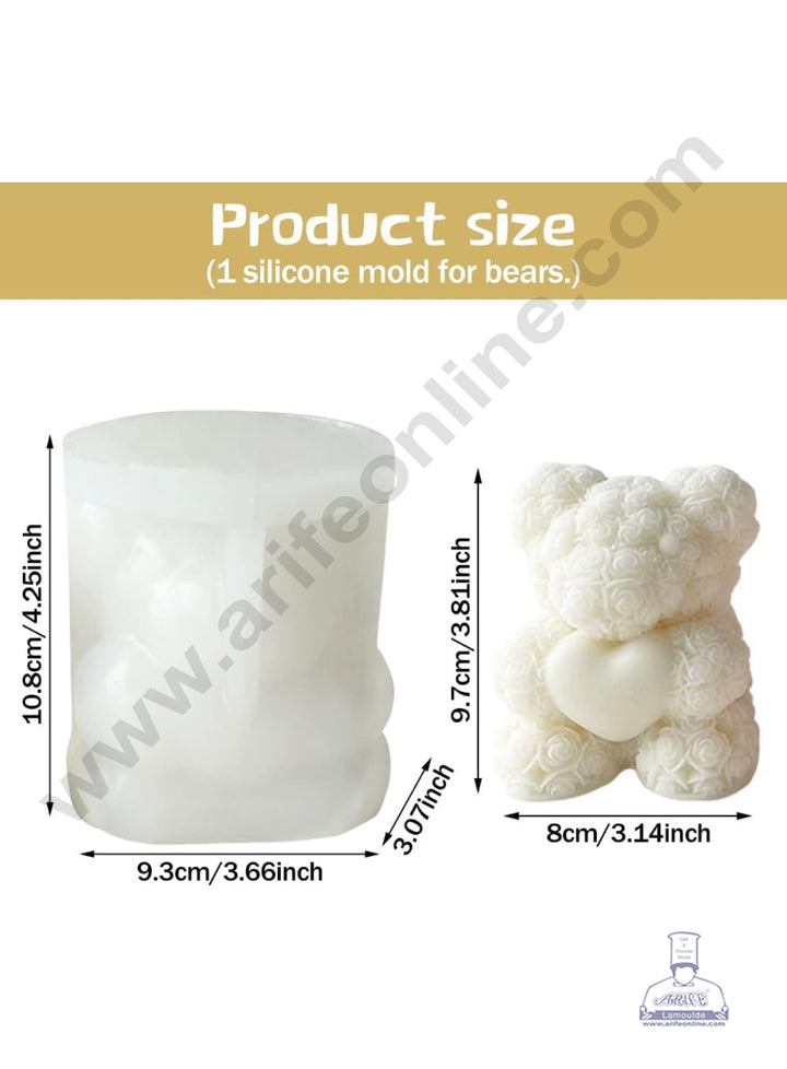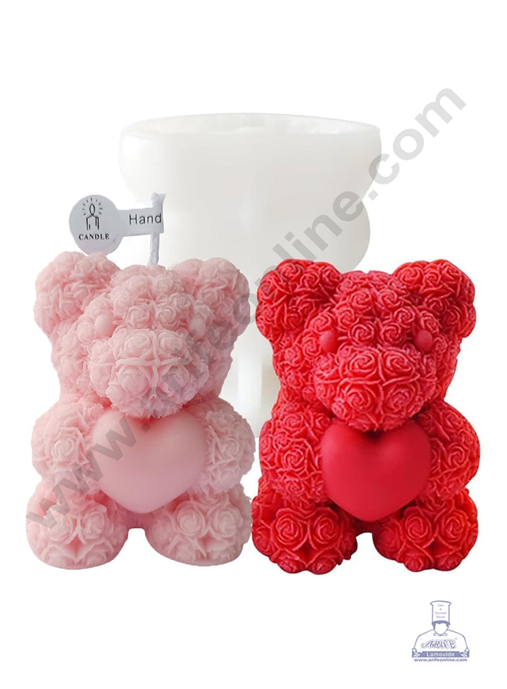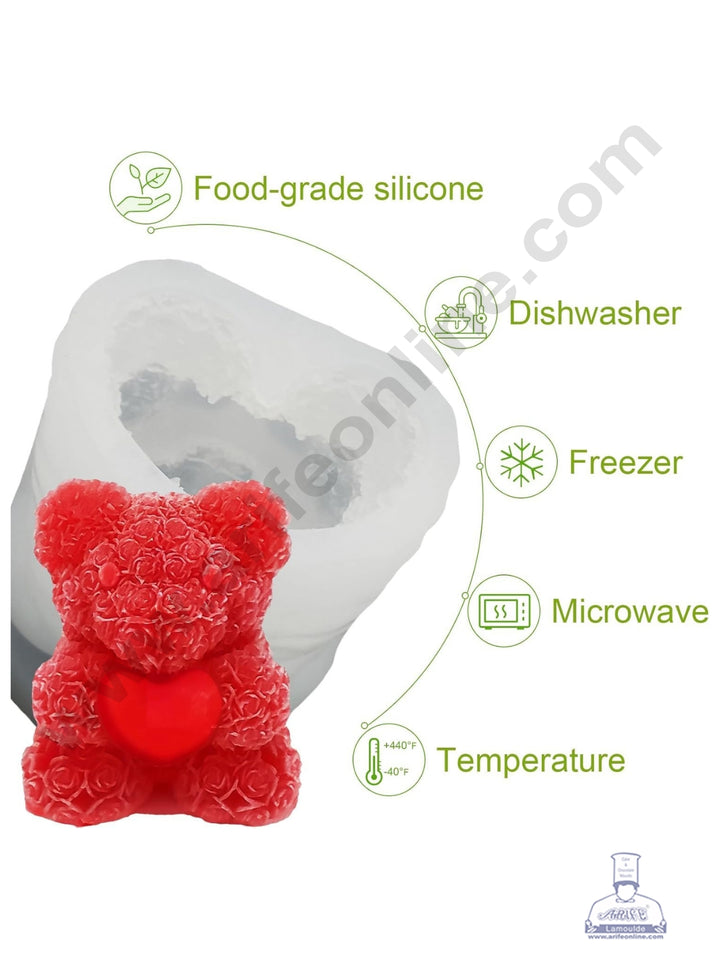 CAKE DECOR™ Teddy Bear with Rose Texture and Heart Silicone Candle Mold│SB-SCM-DYF7332│