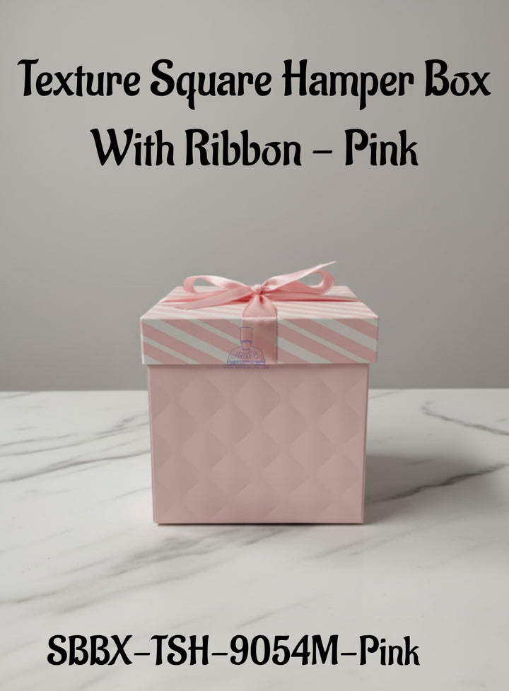 Texture Square Hamper Box With Ribbon - Pink | 15 x 15 x 15 cm | 1 Piece - CAKE DECOR™